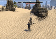 | Given by Anjan You can mount up to make this quest easier. Otherwise bring some stamina potions so you can spring longer. The mobs are annoying as they can dismount you if you get too close to them. Reward: Dunerunners, 283 gold | |